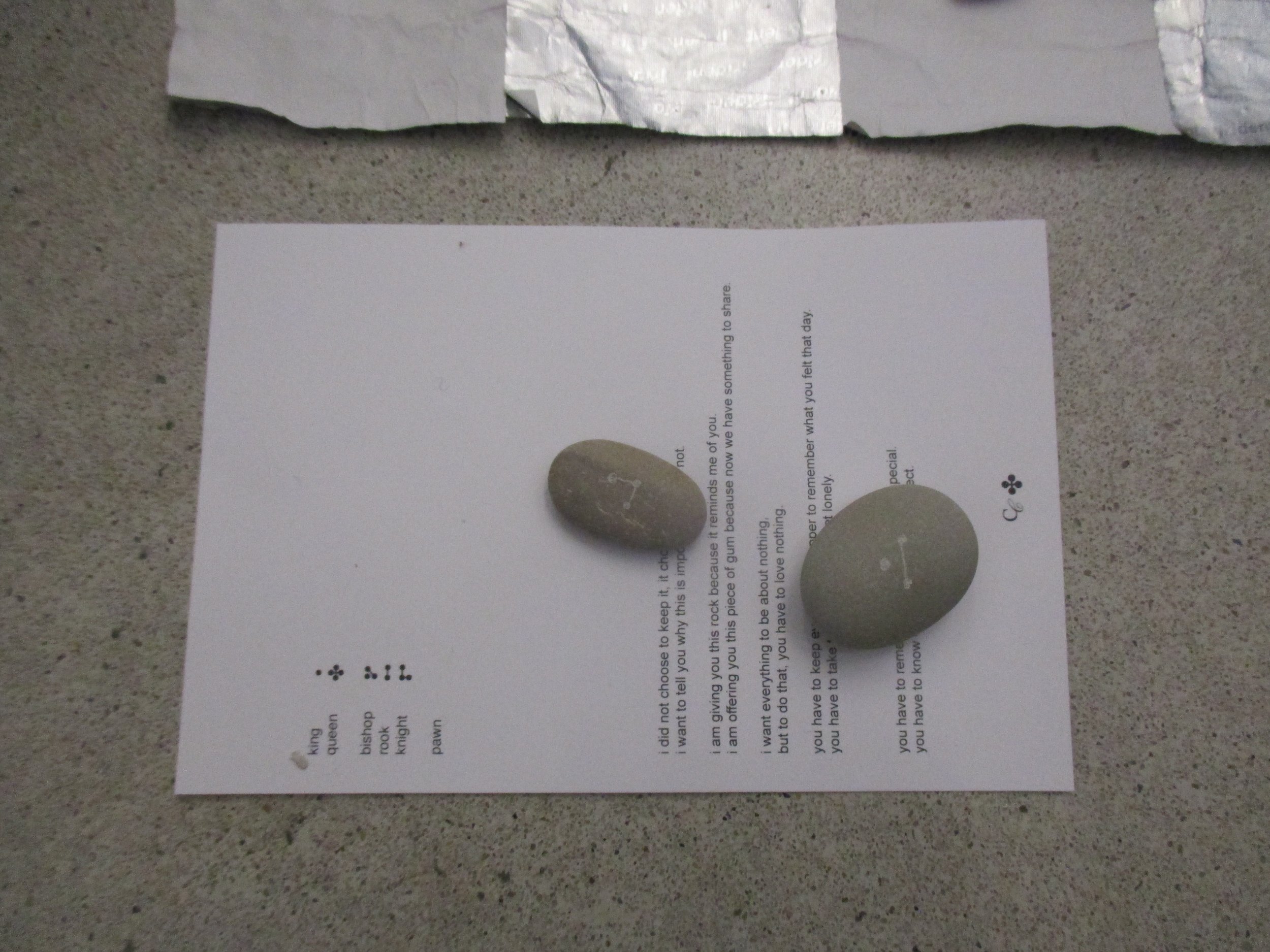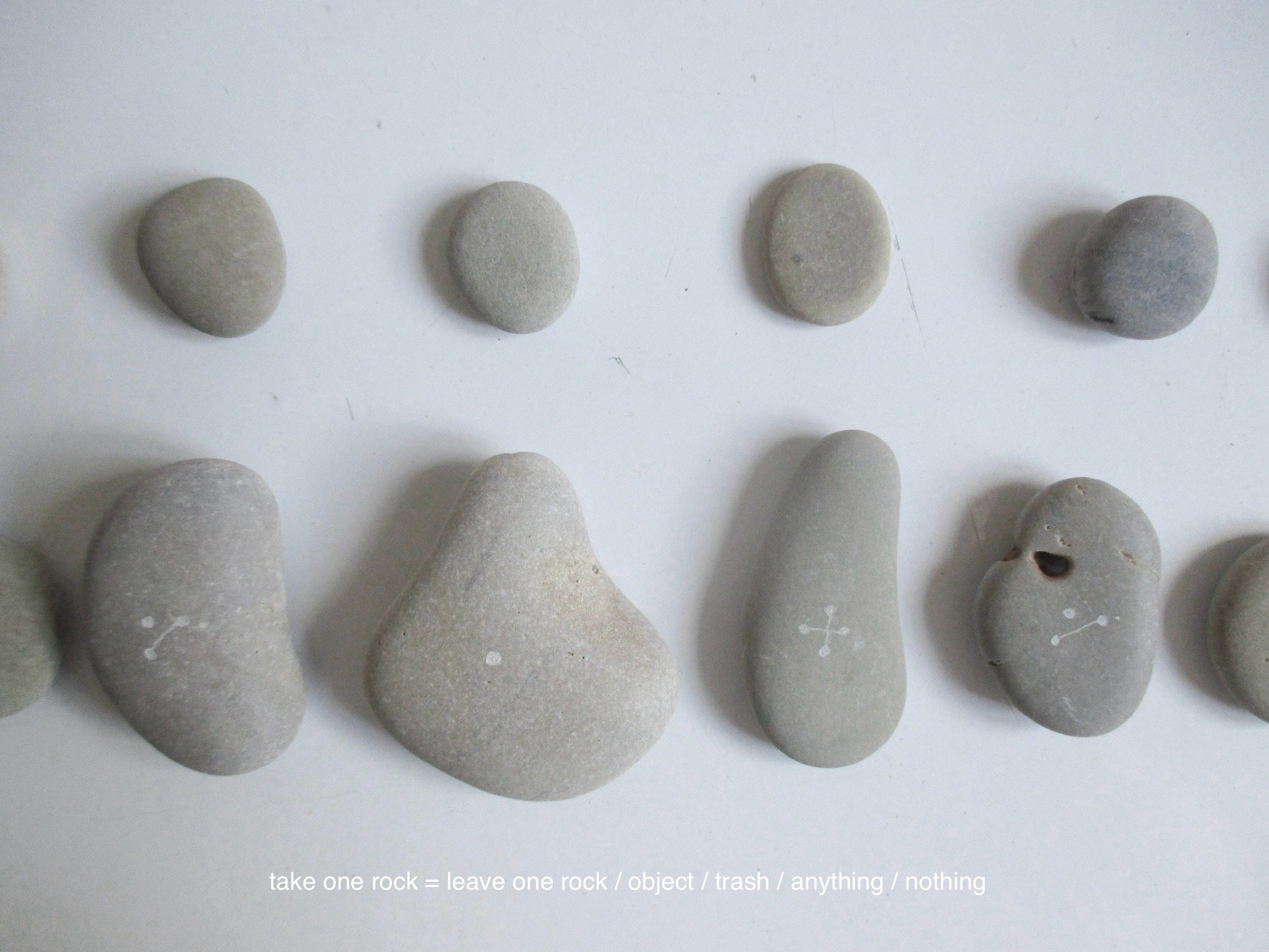 take one rock / leave one rock / object / trash / anything / nothing